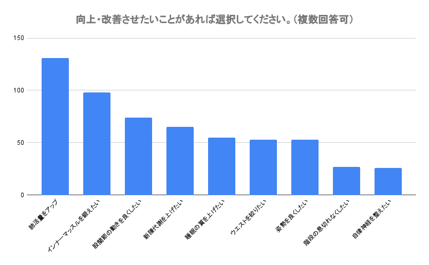 ・約半数の方が、新陳代謝や睡眠の質の向上など日常生活に関する悩みを改善したいと回答しています。