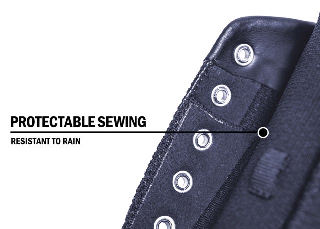 それぞれ羽部分を纏め縫い合わせる際に部分的に袋状に縫い合わせ、縫製部分の撥水性を高めました。雨水はもちろんのこと、バンカーの砂等異物のシューズ内への侵入を防ぎます。この一足があれば、雨靴なしで快適に過ごせます。