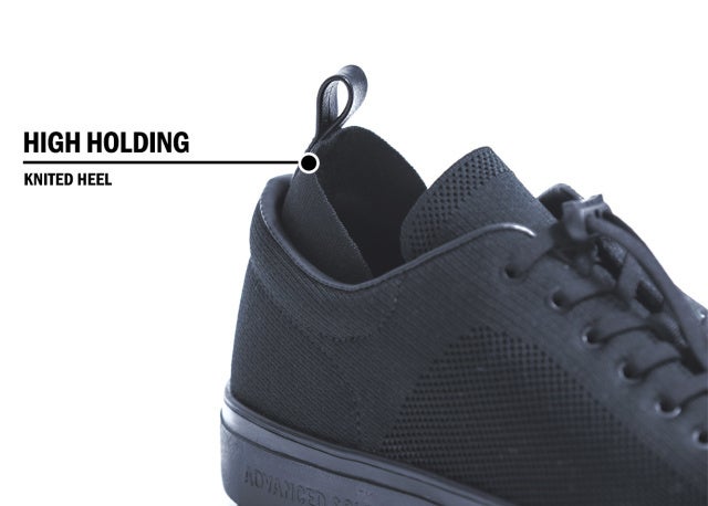 かかとから足首を包みこみ、きちんとホールドするようにデザインを落とし込みました。着脱のしやすさだけでなく、内側が伸びるニット素材の為、かかとにしっかりとフィットします。