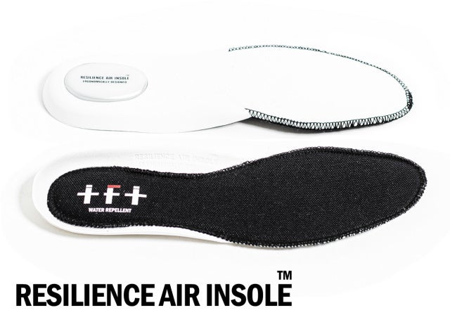 インソールには、人間工学に基づいた〈RESILIENCE AIR SOLE〉を採用。歩行時にエアーパーツが衝撃を吸収し、アーチを支え、かかとから土踏まずにかけてしっかりホールド。膝や腰への負担を軽減する設計になっています。また、素材にポリウレタンフォームを使うことで優れたクッション性も兼備させました。