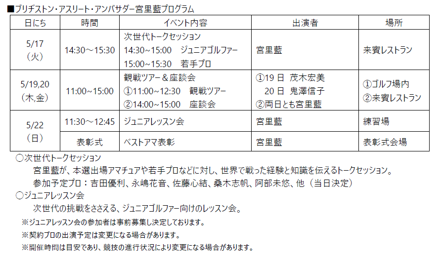 (6) ブリヂストンスポーツ株式会社契約の主な出場予定選手※3