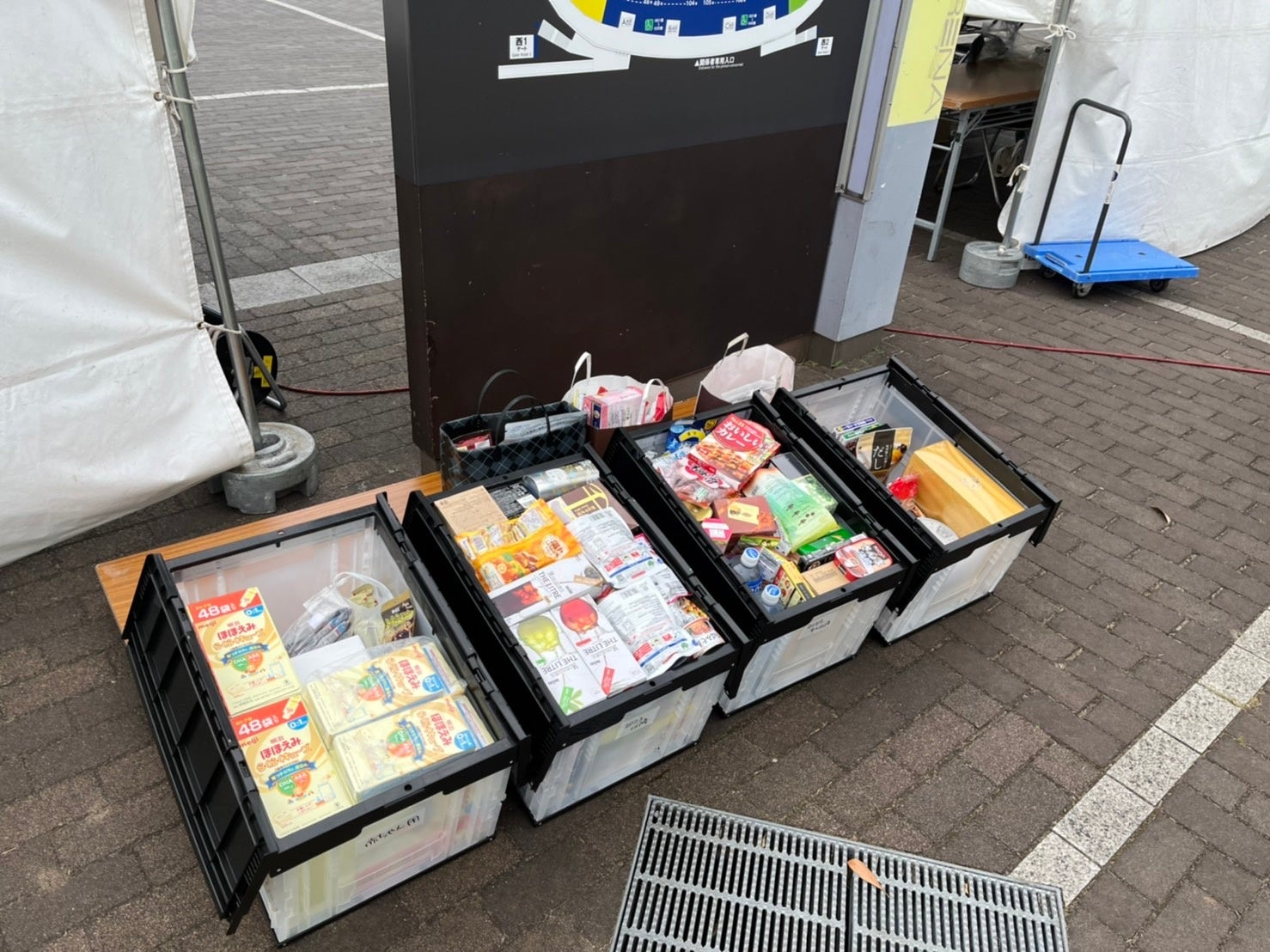 当日は100名のサポーターにご協力いただき、レトルト食品や缶詰など68.5kgもの食料品を集めることができました。