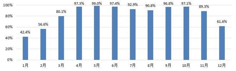 就職活動経験者・予定者に就職活動に対する不安を聞いたところ、「就職できるかどうか」が最も多く70.3%だった。次いで、「学業や部活動と両立できるかどうか(33.9%)」「スケジュールが過密になり大変になりそう(26.5%)」が続いた。運動部学生の運動部学生の活動シーズンについては、「4月~6月」と回答した割合が97%以上と高く、新卒採用広報が解禁される3月から選考が開始される6月まで競技の活動シーズンが重なっている。限られた時間の中で運動部の活動と並行して就職活動を行うため、スケジュールの調整や部活動との両立に不安を抱えている運動部学生が多いようだ。【図1、2】