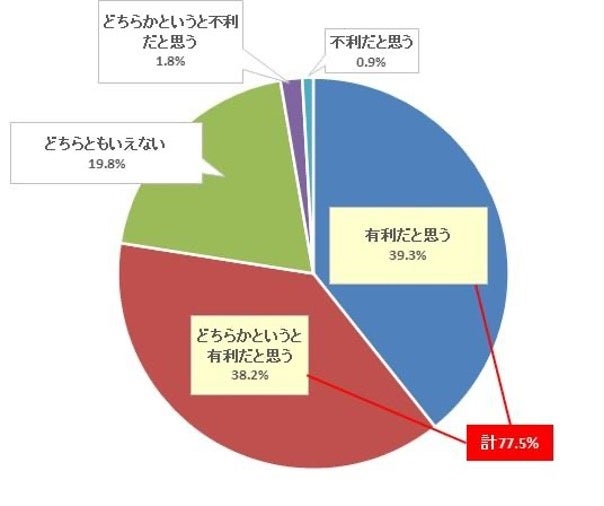 運動部学生は就職活動に有利かどうか聞いたところ、「有利だと思う」と回答した割合は77.5%だった(「有利だと思う(39.3%)」+「どちらかというと有利だと思う(38.2%)」の合計)。理由としては、「誇れる経験ができている(53.7%)」「自分に自信を持つことができた(32.8%)」など部活動の経験を糧にしているものや、「部活内で情報共有ができる(40.0%)」「OB・OGに相談できる(32.2%)」といった人間関係の強みがあがった。【図3,4】