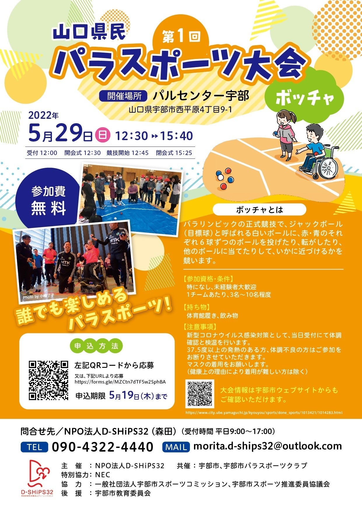 NPO法人 D-SHiPS32は、全国に順次展開中の県民パラスポーツ大会を、山口県で初開催いたします。