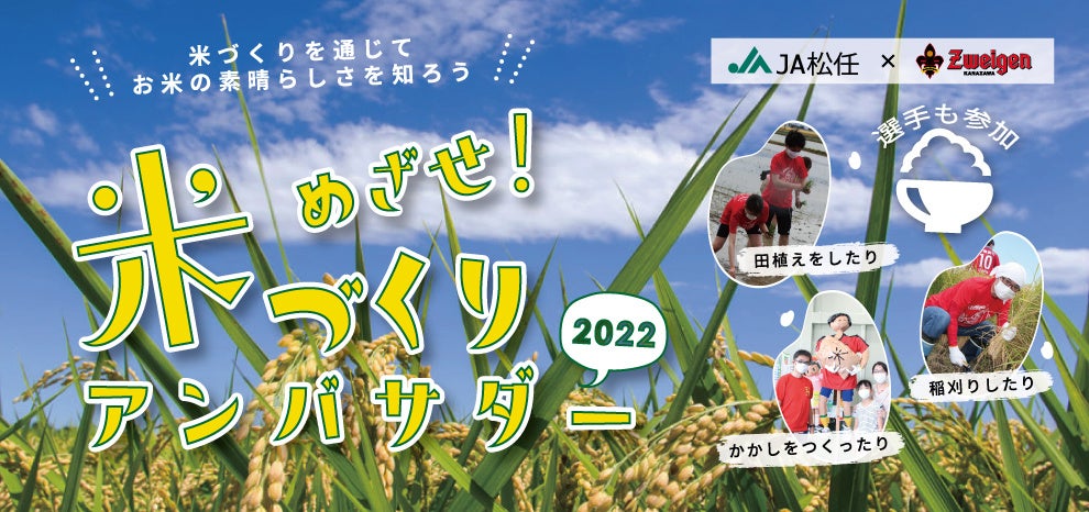 ツエーゲン金沢は、昨年に引き続き、サプライヤーであるJA松任様とのコラボ企画として、「めざせ!米づくりアンバサダー2022」を開催いたします。