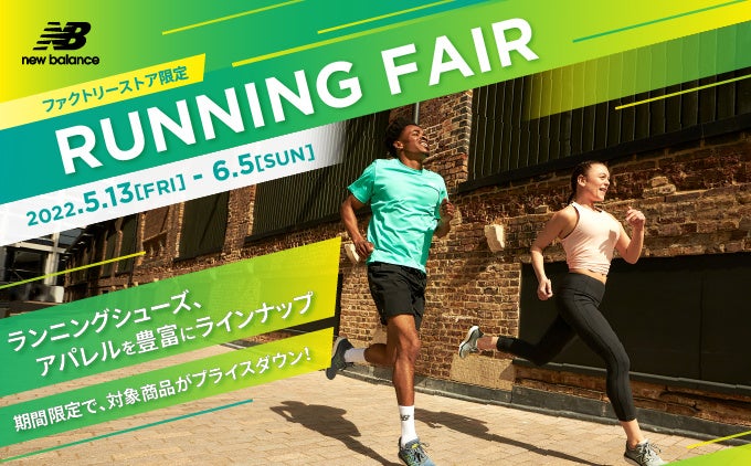 株式会社ニューバランス ジャパン(本社所在地:東京都千代田区、代表取締役社長 久保田伸一)は、ニューバランスファクトリーストアにて、5月13日(金)よりランニングフェアを開催いたします。