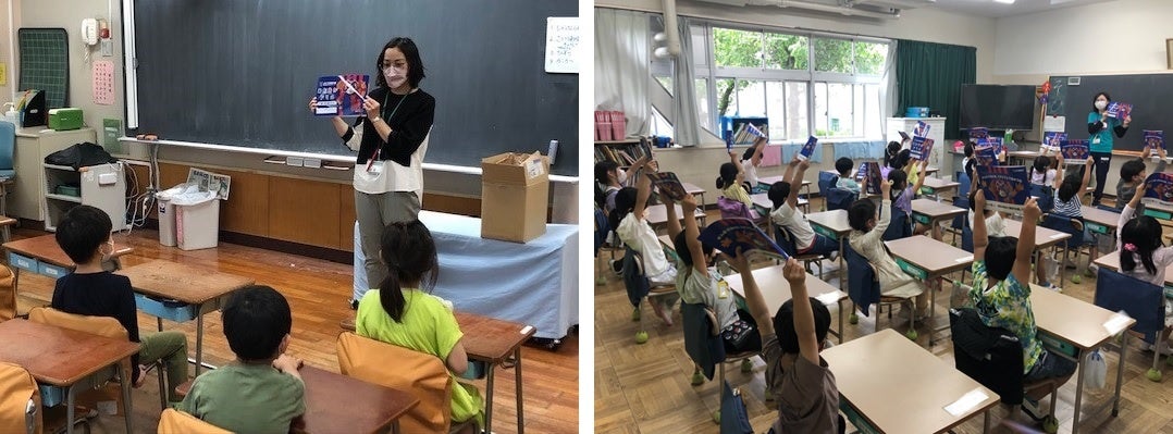 子どもたちの「体力」「スポーツに親しむ機会の向上」などに焦点を当てた小学校の体育教材となる2022年度版『あおあかドリル』が完成し、昨年に引き続き都内の公立小学校の小学1年生に配布いたしました。