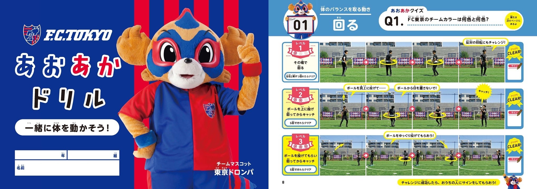 さらにFC東京では、『あおあかドリル』を活用いただいている小学校や都内各自治体の教育委員会と連携し、普及部コーチが学校を訪問してドリルを活用した授業を行うなど、子どもたちの体育・スポーツ機会の充実に向けた取り組みを行っていきます。またFC東京では『あおあかドリル』以外にも、子どもたちにさまざまな運動の機会を提供できるよう「FC東京スマイルキャラバン」として、普及部コーチによる体育の授業や教員研修、スタッフによる職業講話(キャリア教育授業)など、さまざまな取り組みを実施しています。