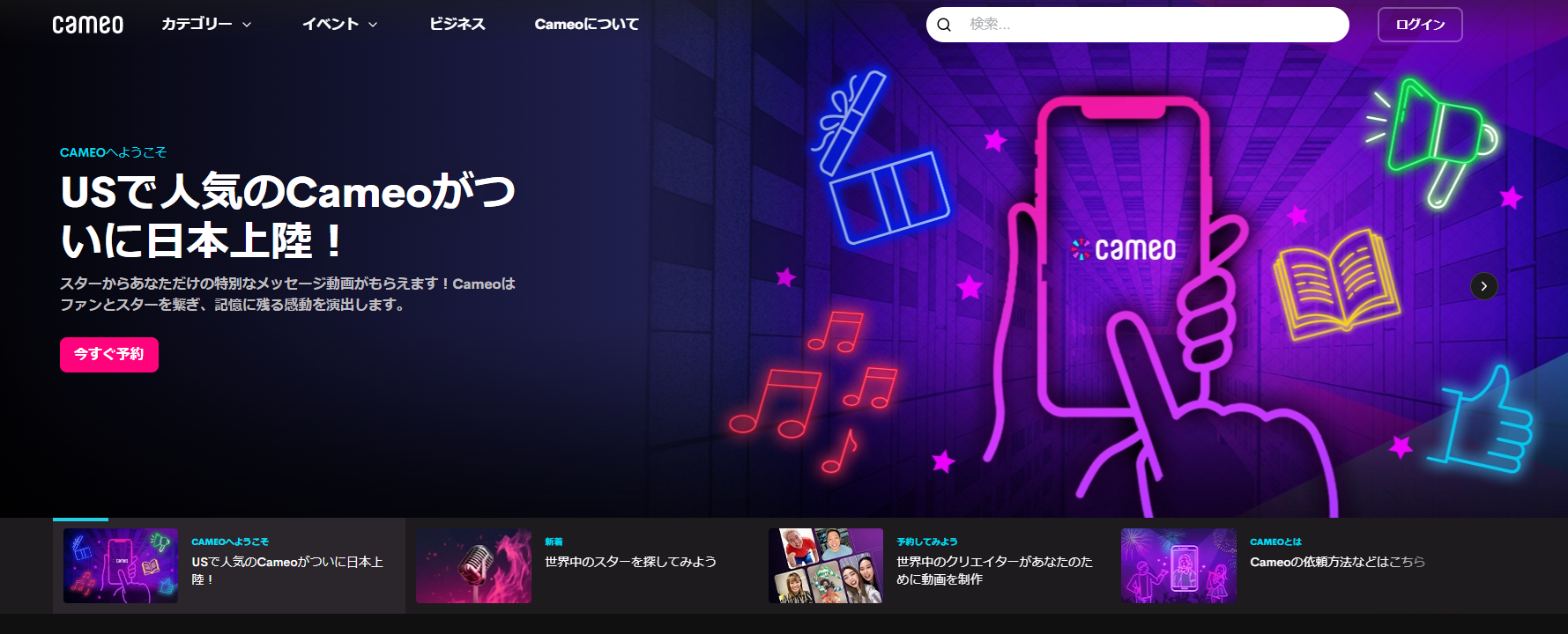 ・応募方法:Cameo登録後、特設ページより必要事項を記入し、注意事項をご確認の上リクエストを送信ください。