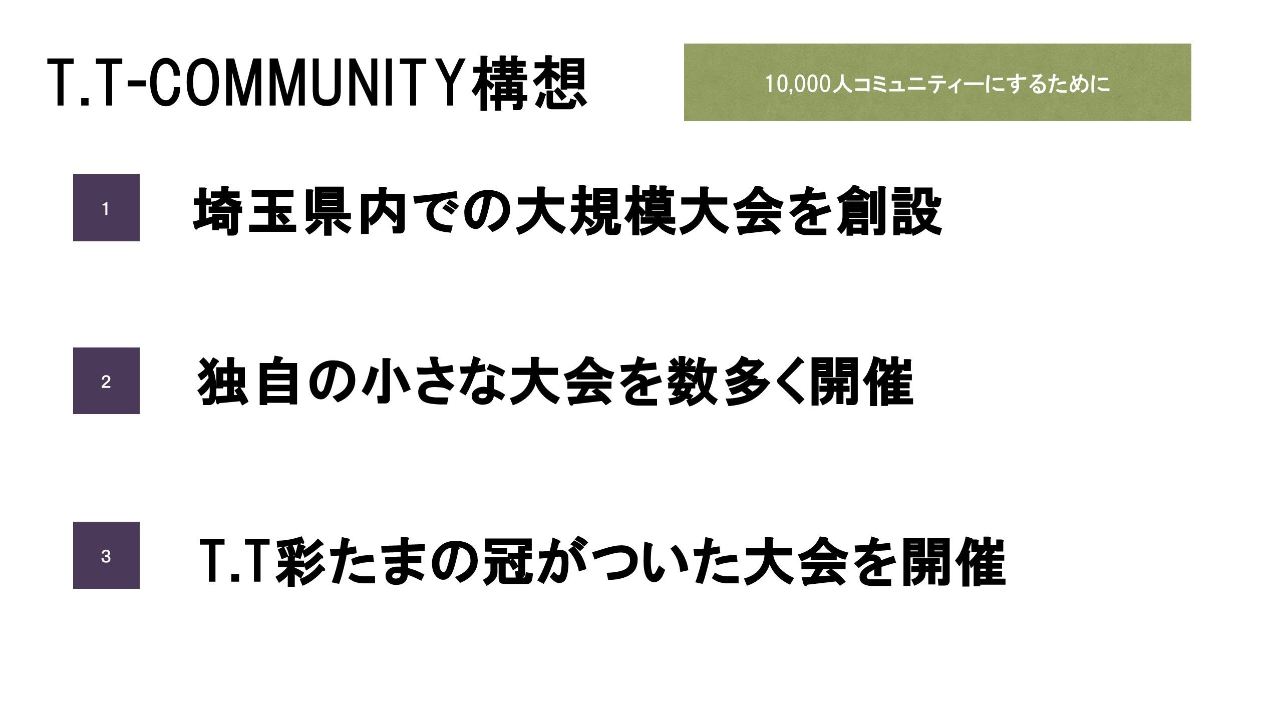 T.T彩たま株式会社(所在地:埼玉県さいたま市浦和区、 代表取締役:梅谷 知彦)は『T.T-COMMUNITY構想』を策定しましたのでお知らせいたします。