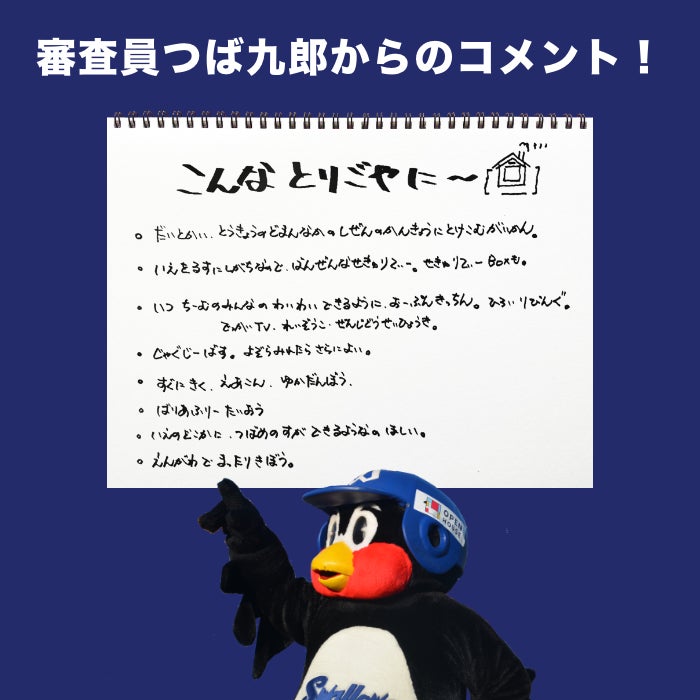 日本全国のファンから長年親しまれてきた「つば九郎」だけに、そのお家の建設にもみなさまに関わっていただきたいという主旨から、お家の外観デザインは公募によって決定されます。