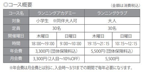 クラブ・アカデミーの開講は週2日です。雨天時はダイヤ工業社屋内で、ストレッチや身体のケア、運動能力チェックなどを行う場合があります。また、季節ごとに他のランニングクラブと合同で記録会なども実施しています。