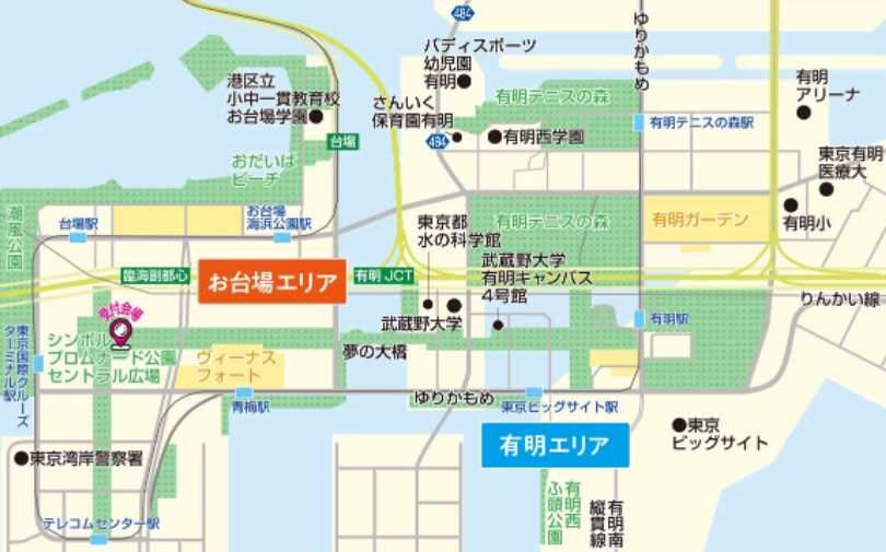 ゆりかもめ 台場駅・東京国際クルーズターミナル駅 徒歩約5分 りんかい線 東京テレポート駅 徒歩約5分