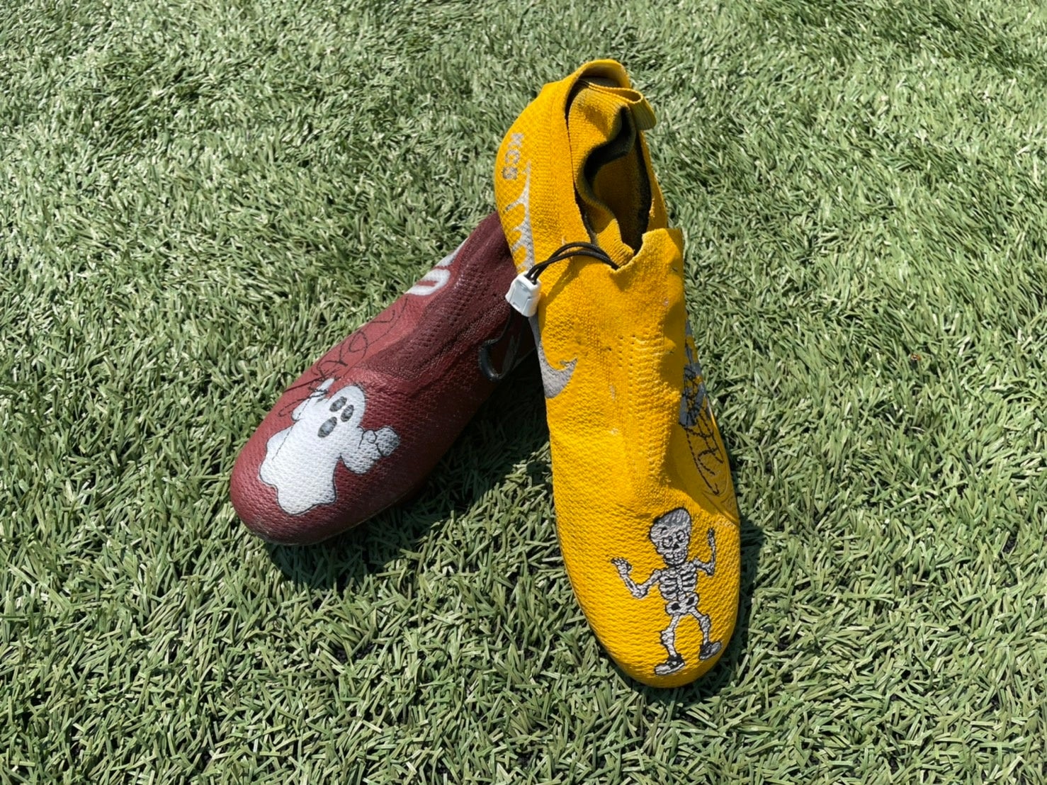 プロジェクトは残り1週間となりましたが、「現役NFL選手が試合で使用したスパイク」「カスタムTシャツ」をリターン品として追加しました。「現役NFL選手が試合で使用したスパイク」は、NFLのロサンゼルス・チャージャーズに所属するディアンドレ・カーター選手が、昨年タッチダウンを決めた試合で使用していたスパイクです。ハロウィーンに向けたオリジナルデザインで、世界で1つしかないスパイクです。