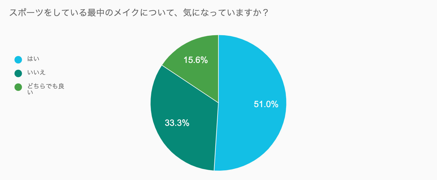 約半数の人が、スポーツ中のメイクについて気になると回答しました。単に「焼けなければ良い」というのではなく、スポーツ中に「どう見えるか」を気にする女性も多いことが伺えます。