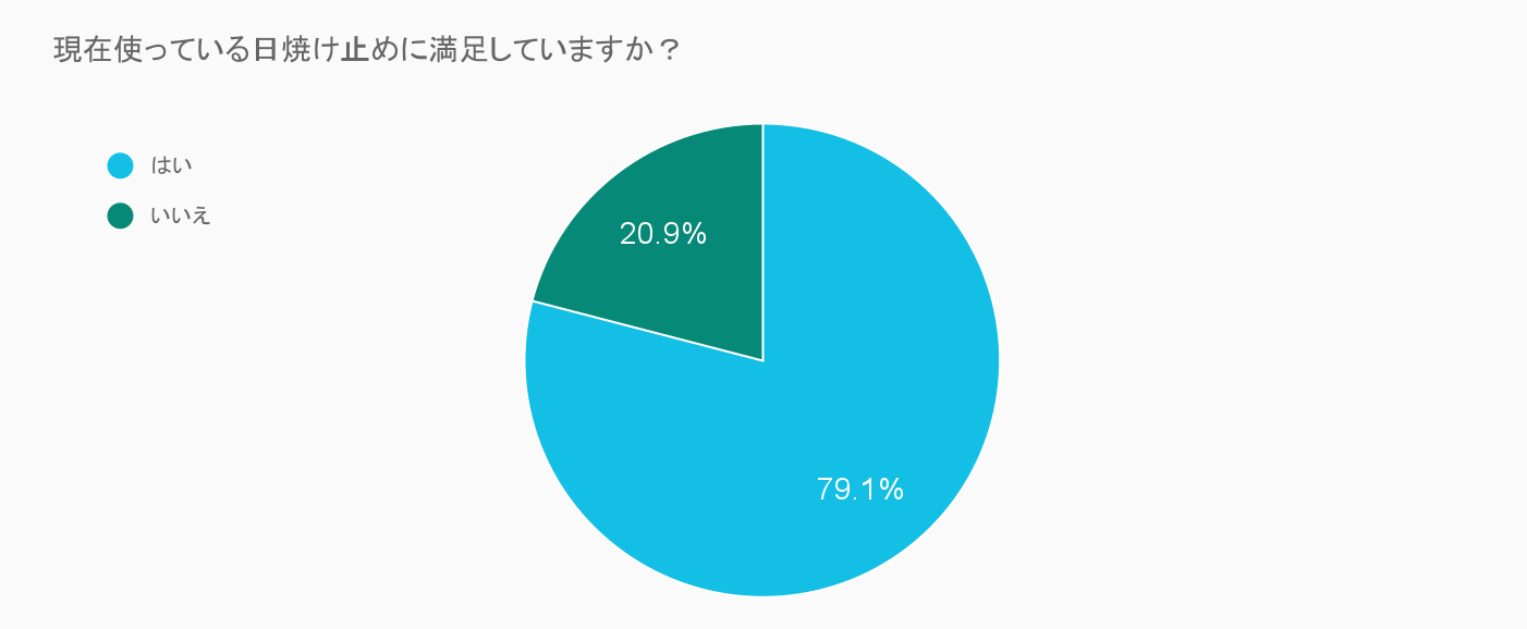 約8割が現在使っている日焼け止めに満足しているという結果に。
