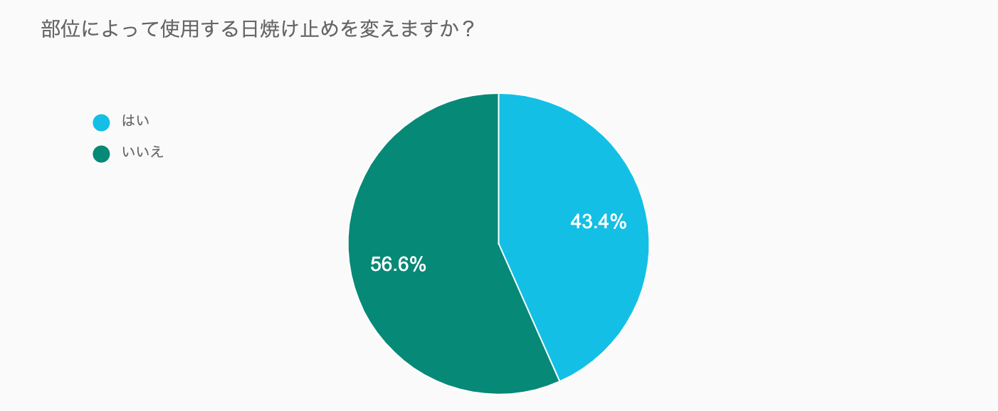 - 43%が「部位によって使用する日焼け止めを変える」と回答。