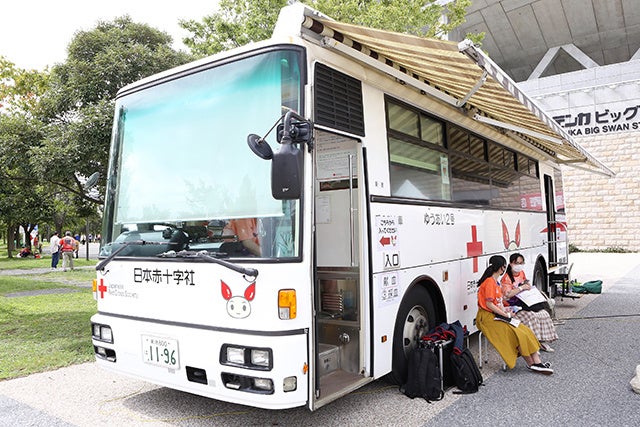 新潟県赤十字血液センターと共催で、デンカビッグスワンスタジアムのEゲート前広場に献血バスを運行いたします。受付時間は9:30~13:00となり、献血にご協力いただいた方には、ポスター(B2版)とクリアファイルをプレゼントいたします。