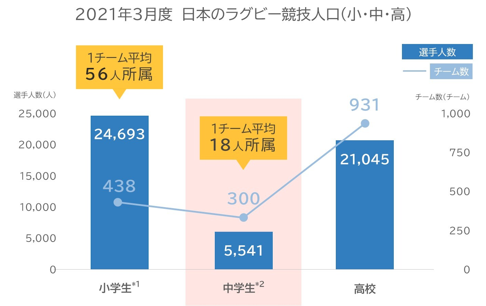 指導者不足やラグビーをする環境が圧倒的に少ないことから特に、中学生世代でのラグビー離れが深刻化しています。