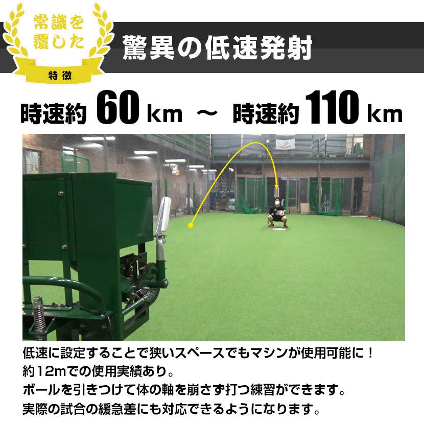 こちらのマシンは60kmまで球速を下げることができるので、まだ速いボールに対応できないジュニアのプレーヤーにもおすすめです。