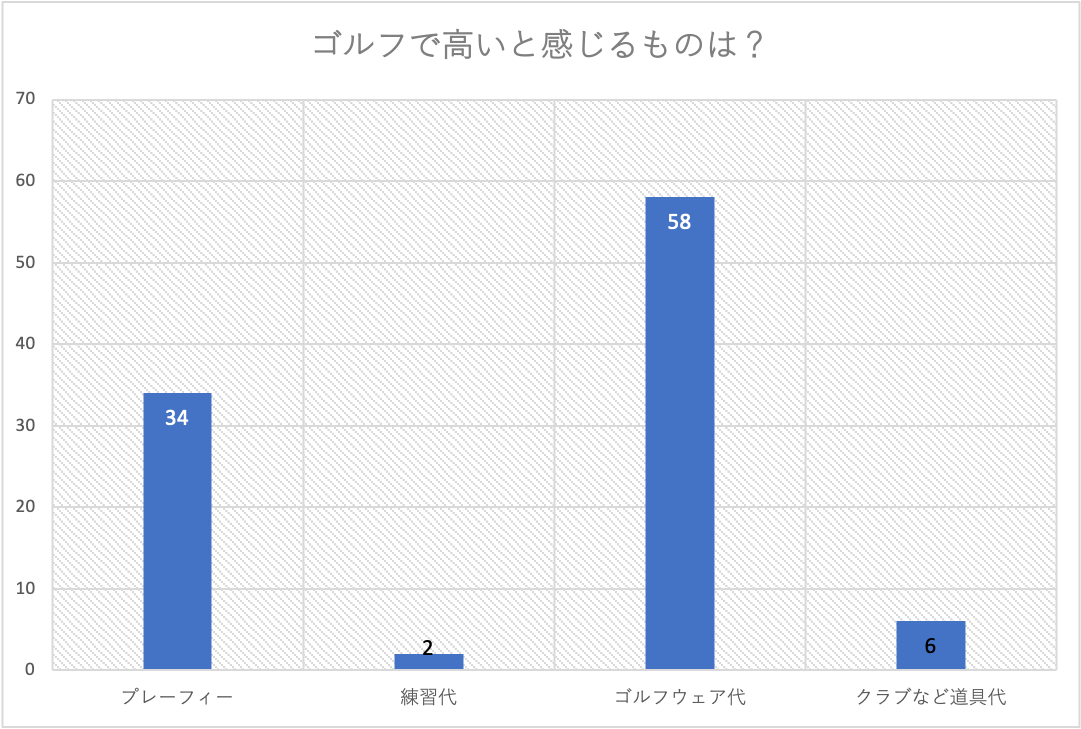 「ゴルフ=お金持ちのスポーツ」というイメージの通り、楽しいがお金がかかってしまうという声が多くみられました。その中でも特にゴルフにかかる費用のうち、ゴルフウェアにおける出費を抑えたいと7割が回答。ラウンド代においては、ターゲットに合わせて低価格〜高価格なゴルフ場まで価格帯に幅が設けられている上に、ショートコースやスループレイなどお得なプランを利用しているということがわかりました。
