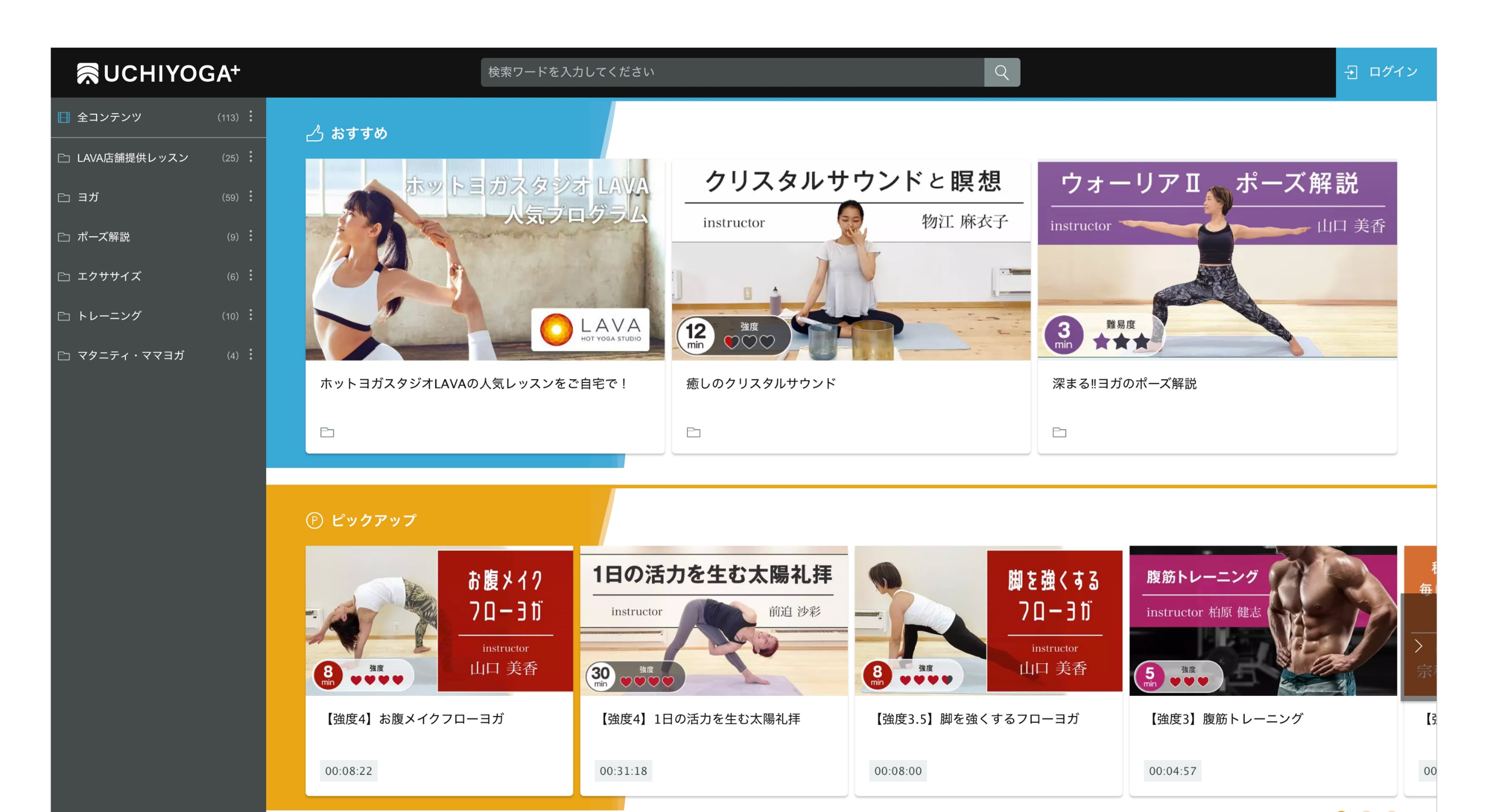 - 業界NO.1のスタジオ数を誇る、LAVAの人気インストラクターの本格レッスンをご自宅で!ホットヨガスタジオLAVA「UCHIYOGA+」