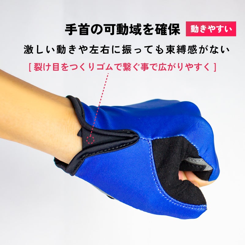 手の甲には吸汗速乾性のあるストレッチライクラアッパー使用し涼しい触感。