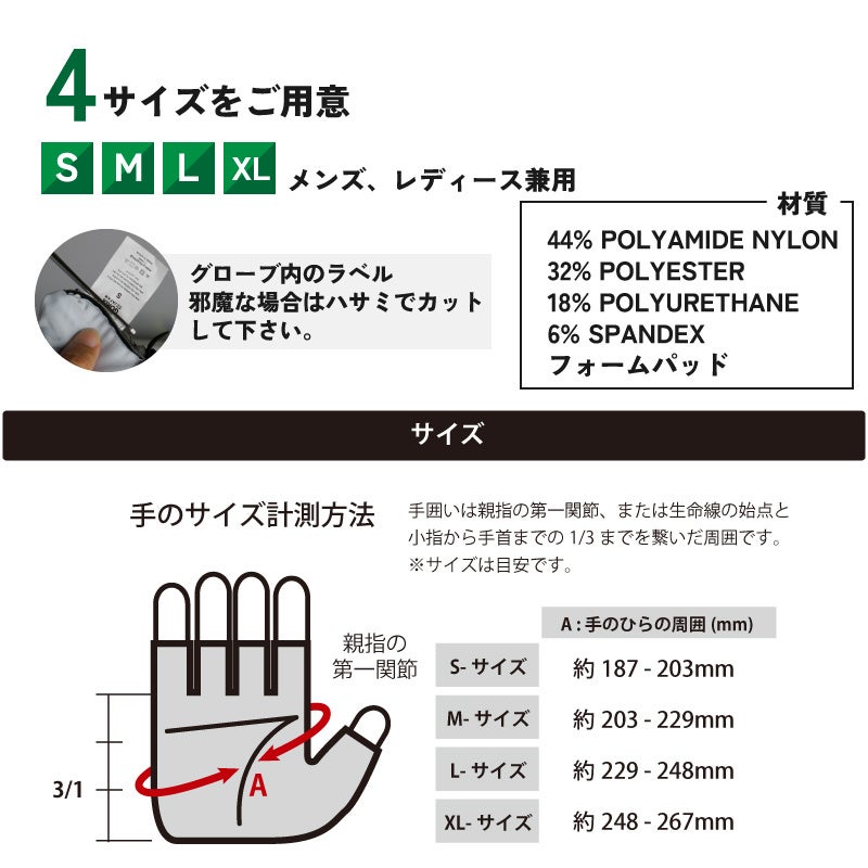 商品内容 自転車用サイクルグローブ(指切りハーフ)