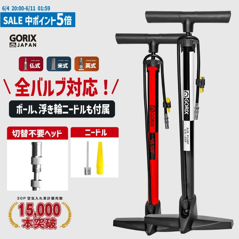 GORIX株式会社(所在地:大阪市東淀川区、代表取締役:長野明)の自転車パーツブランド「GORIX」は、楽天市場店にて2022/6/4(土)20:00~6/11(金)01:59に楽天スーパーSALEを開催。バーテープ、スタンド、サングラス、空気入れ、バッグなどの自転車用品が最大90%OFFとなる楽天ビッグセールです。