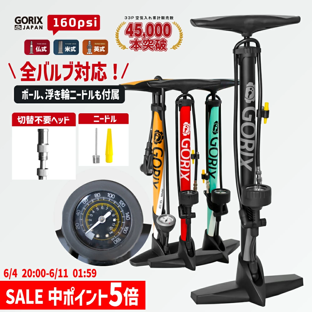 全バブル対応!ゲージ付き空気入れ GX-33P
