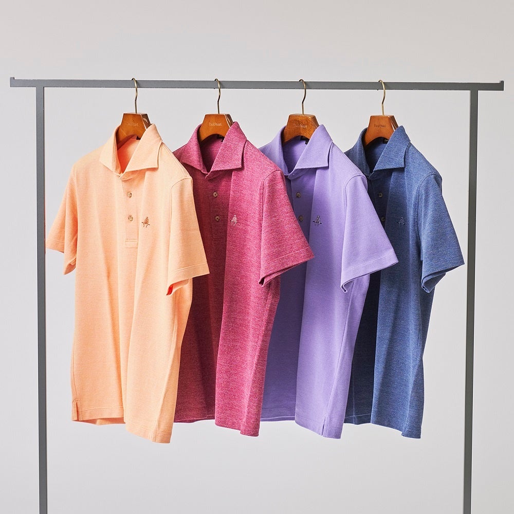 「ポール・スチュアート」らしい絶妙な色合いが特徴の定番ポロシャツは、シルエットの立体感と着用感をアップデート。ジャケットにあわせてもさまになるように、第一ボタンを開けたときの襟の立体感にこだわりました。肩の傾斜やアームホールの構造を見直して、余分なゆとりが出ないように調整したことで快適な着心地に。