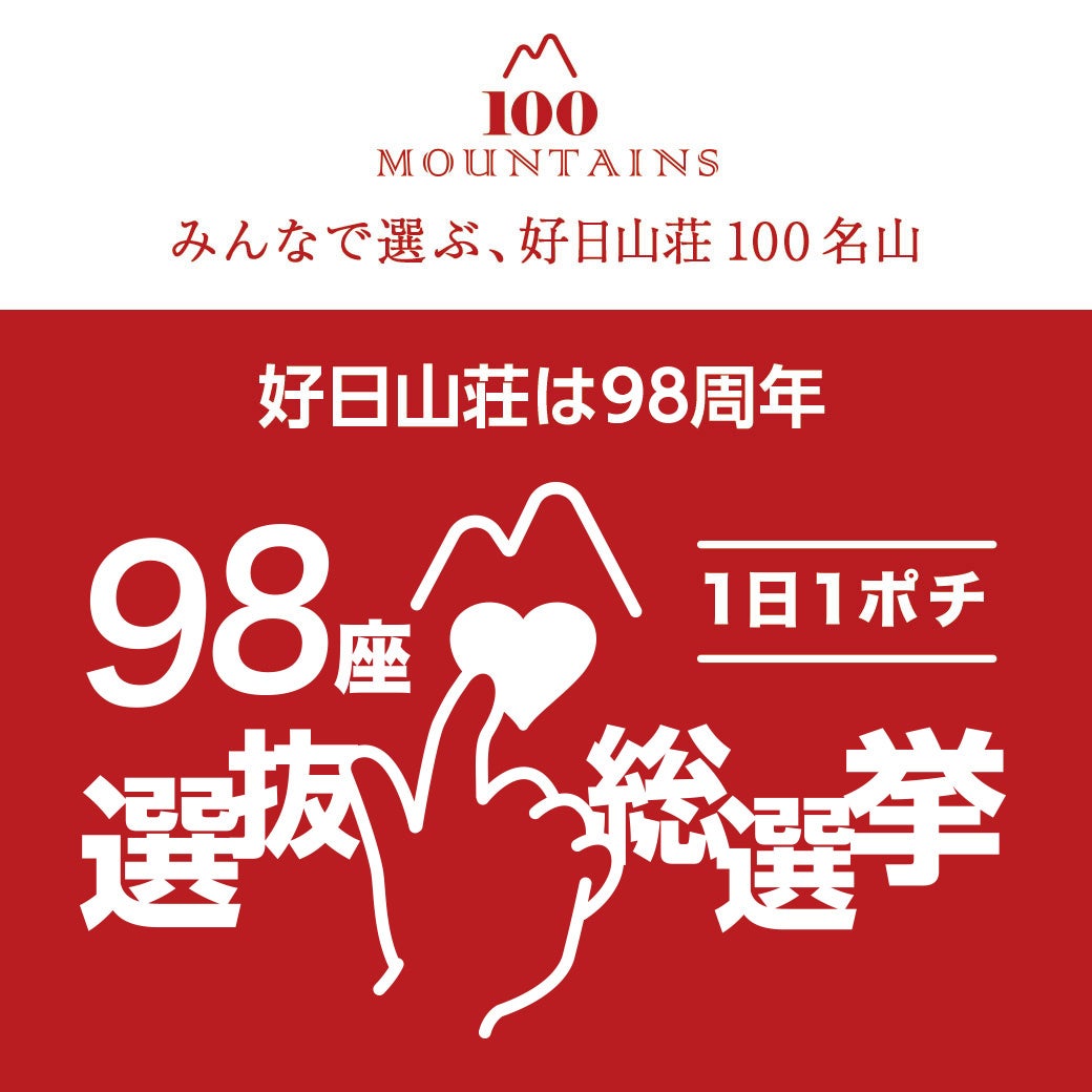登山・クライミング・アウトドア用品総合専門店、クライミングジムを運営する株式会社好日山荘(本社:兵庫県神戸市、代表取締役社長 池田 真吾)は、6月3日(金)から、好日山荘100名山の98座目を決定するお客様投票形式の選抜総選挙を開催します。