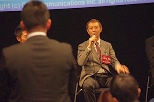 説明会の終盤では各事業部の社員が学生からの質問にお答えします。質問をする学生と、舞台上でそれに答える社員の姿はまるで映画の完成披露試写会のような雰囲気になります。