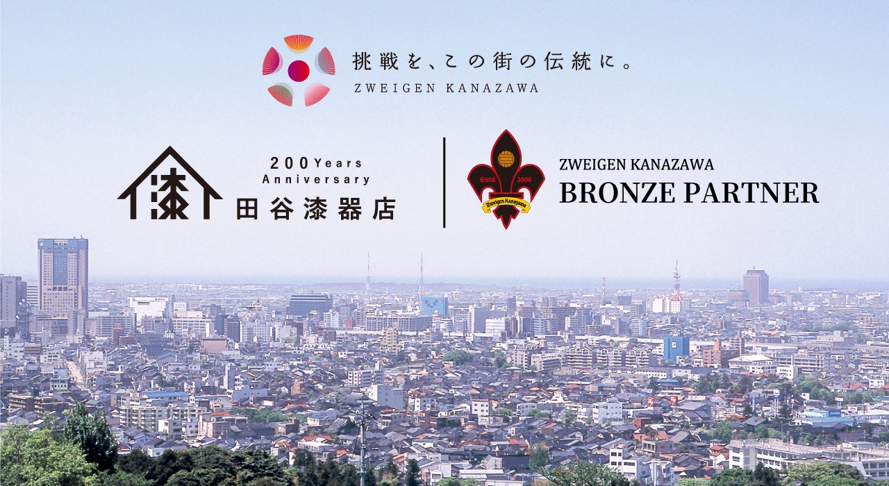 この度、ツエーゲン金沢のオフィシャルパートナーとして、「輪島塗 田谷漆器店」様にご協賛いただくことになりましたのでお知らせいたします。