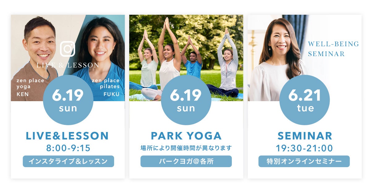 2022年6月19日(日)は、zen place yogaエデュケーター KENとzen place pilatesエデュケーター FUKUによるトークセッションとヨガレッスンをインスタLIVEで無料配信(@zenplace_official)いたします。ヨガとピラティスそれぞれの視点から本気でヨガを語り、2022年5月にリリースされたばかりのプライベートレッスン「セラピューティック・ヨガ」を特別にLIVEで体験いただけます。さらに、全国10ヶ所の公園で無料イベント「zen place パークヨガ with UCC」を開催します。会員・非会員問わず初心者から上級者までどなたでもご参加いただけます。太陽の下でzen placeの「セラピューティック・ヨガ」を楽しみ、参加者のみなさまに、UCCのアイスコーヒー(UCC COLD BREW DECAF)またはリフレッシュティー(PARADISE TEA)をプレゼント。心地の良い公園で、幸せなひとときをお過ごしください。