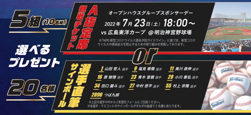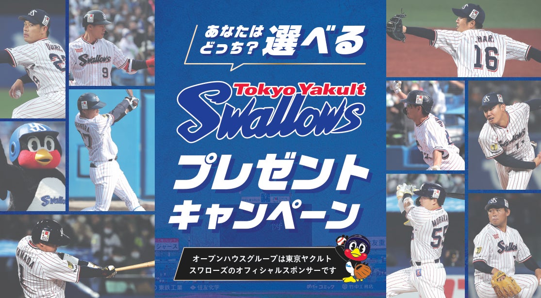 株式会社オープンハウスグループ(本社 東京都千代田区、代表取締役社長 荒井正昭、以下「当社」)のグループ会社である株式会社オープンハウス・ディベロップメント(以下「オープンハウス・ディベロップメント」)は、明日6月4日(土)より、当社がトップスポンサーを務めるプロ野球チーム 東京ヤクルトスワローズ(以下「スワローズ」)の観戦チケットなどが当たるプレゼントキャンペーンを開催いたします。
