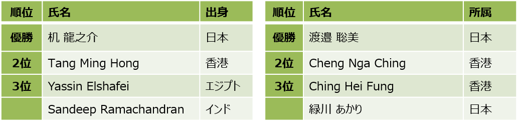 初めて海外選手を呼んだ「ダイナムカップ」で優勝できて本当に嬉しく思っています。6月はオフシーズンで大会はありませんが、その後は7~8月と大会が続きますのでそちらの大会でもいい結果が残せるように頑張っていきます。今はイギリスを拠点に活動しており、海外での大会だと本当に苦しい試合がたくさんあります。今回対戦した選手はまだジュニアの選手で、今後の成長を思うと、これからも苦しい試合が増えて来ると思います。トレーニングを積んで頑張っていきたいと思います。