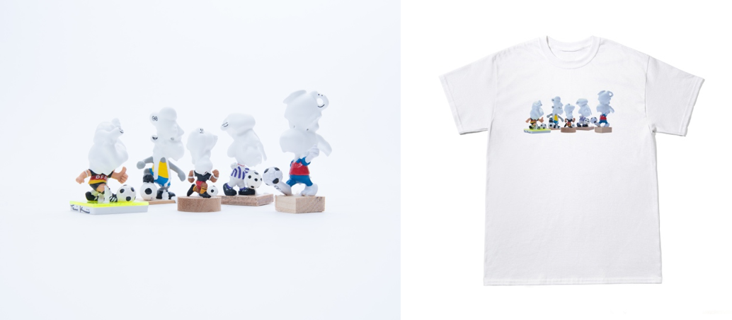 アーティストの金氏徹平とSHUKYUのコラボレーションにより、彼の代表作品の一つである「White Discharge」から、このコラボレーションに合わせて制作された11体のサッカーフィギュアを用いた作品「White Discharge (Figure/Football)#1-11」を展示します。また、作品をモチーフにしたTシャツも販売いたします。