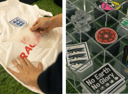 Jリーグやプレミアリーグの背番号を手がけるAvery Dennison (エイブリィ・デニソン)の協力のもと、SHYUKYU Magazineオリジナルのワッペンやシートを使って、ご自身のユニフォームやTシャツをカスタマイズできます。クリエイターがデザインしたワッペンを30種類以上ご用意。ご自宅からお持ちいただいたものでも、会場でご購入いただいたものでもカスタマイズ可能です。
