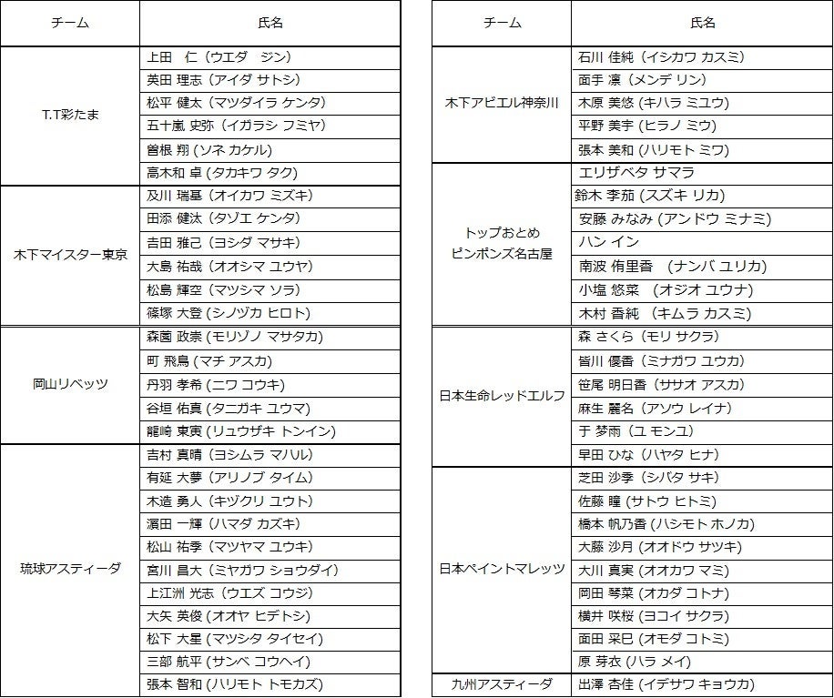 Tリーグでは、2022-2023シーズン 登録完了選手を以下の通りお知らせいたします。