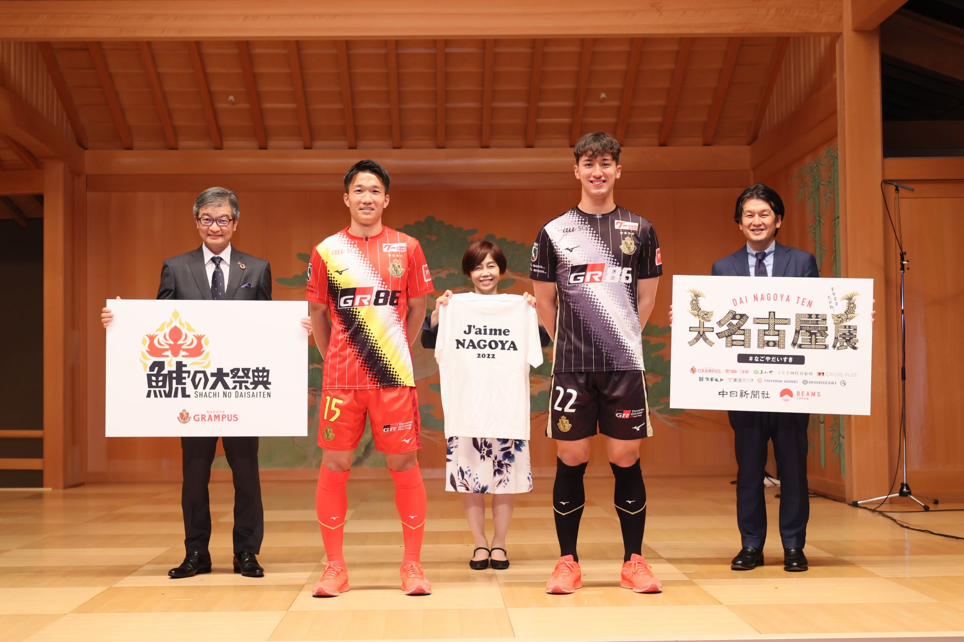 名古屋グランパスが主催する「鯱の大祭典」にて着用する記念ユニフォームを発表しました。そのユニフォームを着用し登場した名古屋グランパス 稲垣祥選手は、第一印象を聞かれると「全身が赤色に包まれ、とてもエネルギッシュな印象です」と話しました。また、東ジョン選手は、「黒色が一番好きな色なので、着用するだけで気分が高まります」とコメントしました。