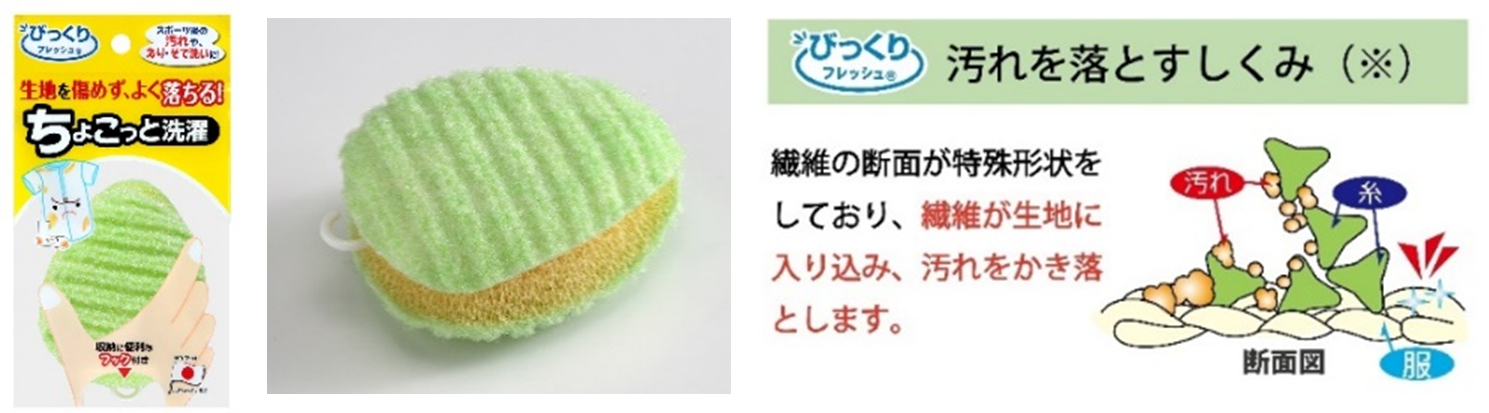 野球の練習や試合後の汚れたユニフォームの予洗いに最適なクリーナーです。弊社独自の特殊繊維「びっくりフレッシュⓇ」※を使用しており、洗濯機だけでは落とせない頑固な汚れの予洗いにおすすめです。ユニフォームの繊維に入り込んだ汚れを掻き出すことで、生地を傷めずに土や泥の汚れを落とします。