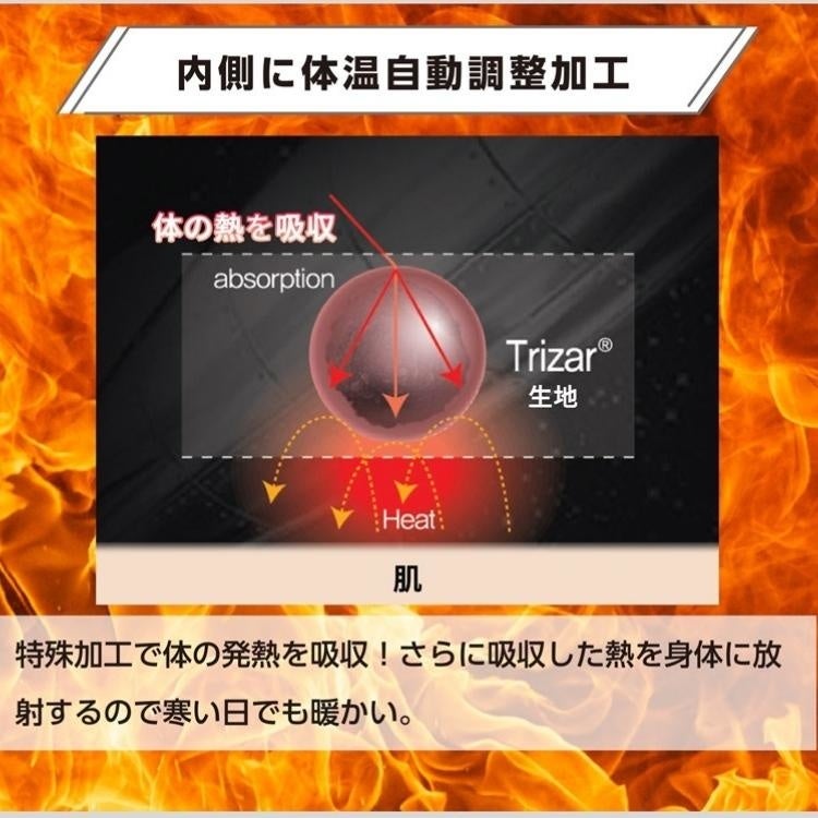 生地内側には体の熱を吸収する加工がされており、気温の低い日には体が発熱した熱を外部に奪われる事なく吸収します。その熱を必要量に応じて肌に放射するので、最適な体温を維持するのに役立ちます。