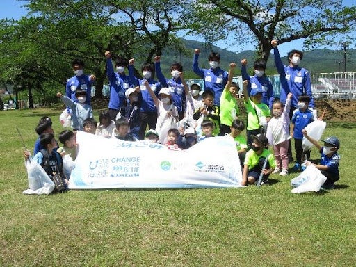 CHANGE FOR THE BLUE in青森実行委員会は、JFLラインメール青森FCにご協力をいただき、2022年5月29日(日)に、むつ市のむつ総合運動公園陸上競技場で行われた対FCティアモ枚方との試合前に、選手・スタッフ・観客などが一緒に競技場周辺の清掃活動を行う「ラインメール青森 FC海ごみゼロマッチ」を開催いたしました。