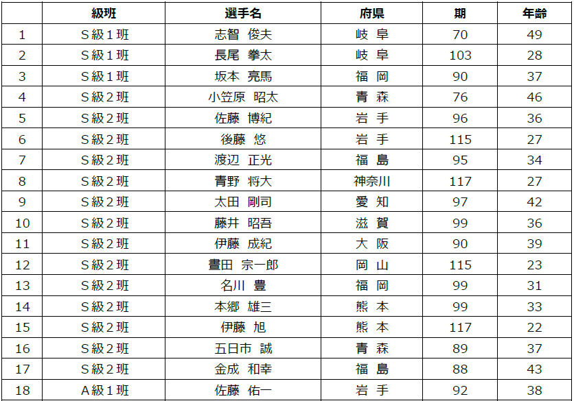セカンドクォーター ラウンド2は過去PIST6優勝経験者が多数参戦。前開催優勝の藤井昭吾(滋賀/写真左)を筆頭に、晝田宗一郎(岡山)、青野将大(神奈川)、堀江省吾(長野)らの若手3人が揃い、初日から高いレベルのレースが期待できそうだ。