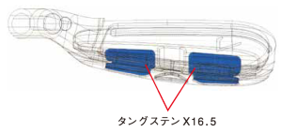 業界初、鉛の1.5倍もの比重16.5の超高純度タングステンX16.5を装着し、