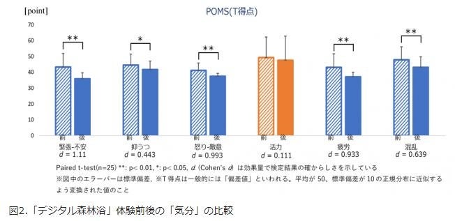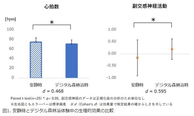 論文内では、uralaa(デジタル森林浴)を体験することで日々のストレス低減と疲労回復効果が実証され、実際の森林浴に近い効果が得られたことを確認いたしました。