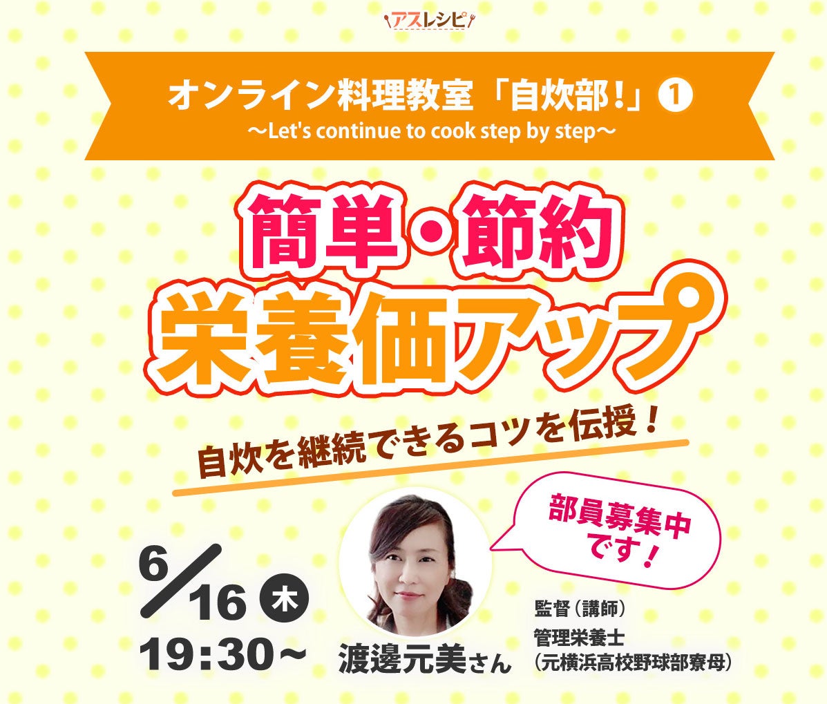 株式会社日刊スポーツ新聞社(東京都中央区)のグループ会社、株式会社日刊スポーツNEWS(東京都中央区)が運営するスポーツ栄養サイト「アスレシピ」(https://athleterecipe.com/)は、調理の手順やコツを学び、アスリートの食事作りを継続する力を身に付けるオンライン料理教室「自炊部!」を開講します。