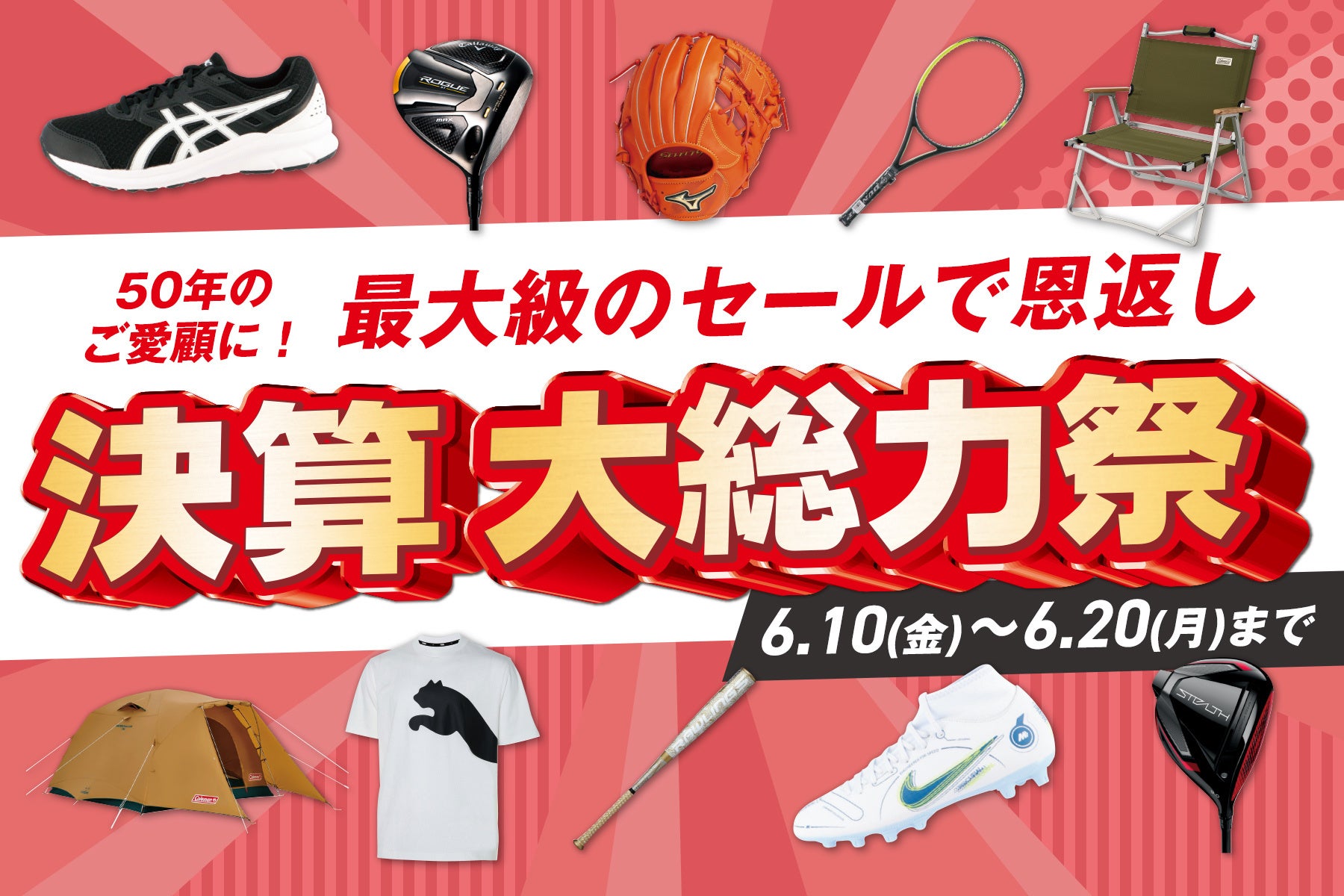アルペンは、「スポーツをもっと身近に」をパーパスに掲げ、スポーツをもっと普及させていきたい、スポーツを楽しむ人たちに寄り添う存在でありたいという思いで活動してきました。そしてこの度、50周年のご愛顧に感謝を込めて、6月10日(金)より「決算大総力祭」を開催いたします。